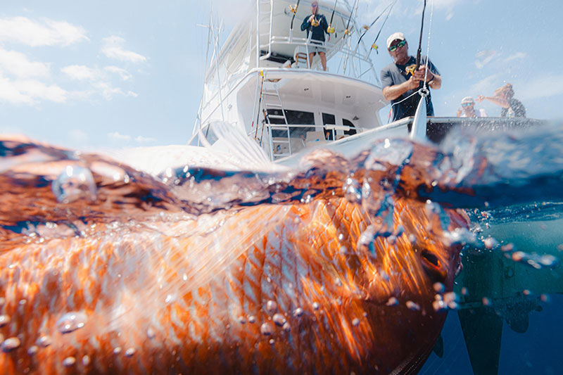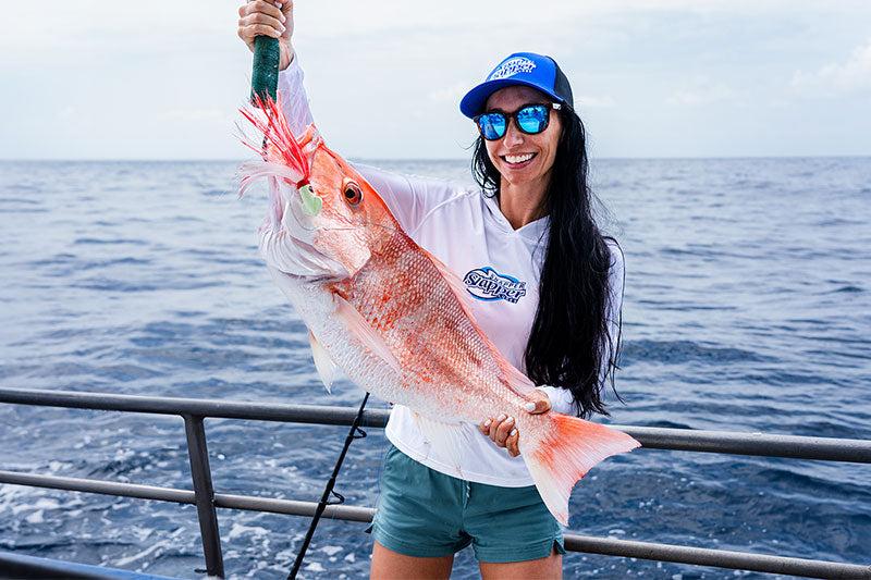 Like anglers do, we always want to catch more fish and with something new. So we added to the original Snapper Slapper squid head style, with heavy metal Slapper Rip Rollers, SK Jigs, and other flashy metal jigs. Some dance and vibrate on the horizontal drop and attract the attention of our favorite bluewater species. They prompt a strike on the drop as well as on the jig. Double metallic and glow-in-the-dark sides and contrasting colors create a blinking flash on the horizontal drop and the two hooks allow us to bring ‘em up two on at a time.